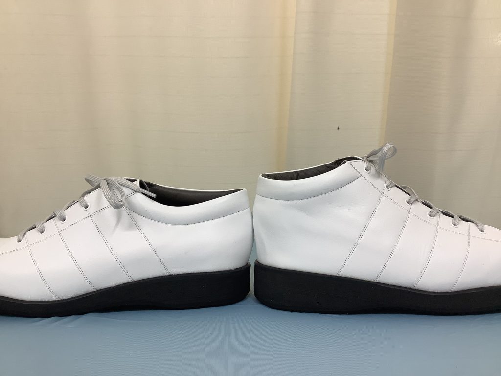 若い頃に交通事故に合われました。歩行時に痛みがなく、安定した靴が欲しいと希望されました。今回はゴルフをされることからスニーカータイプの靴を製作することになりました。芝の上でもすべらないように弊社独自の靴底を考案し、デザイン料をご負担いただきましたが、デザインもなるべくゴルフシューズに見えるよう製作し、安定感のある靴を提供させていただけました。