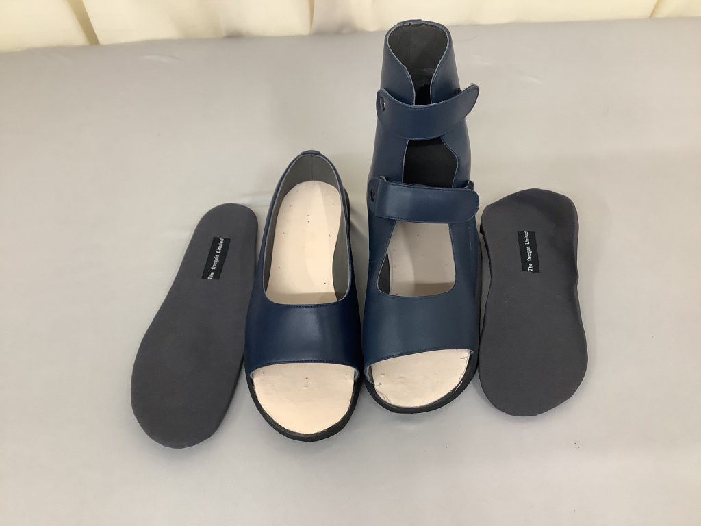 A.はい、可能です。外反拇指の方は足の親指の付け根が外に曲がり、変形が強いと、市販の靴では痛みや圧迫が強く出ることがあります。弊社では、親指の関節部分に余裕を持たせた靴や、負担を軽減するインソールを製作します。