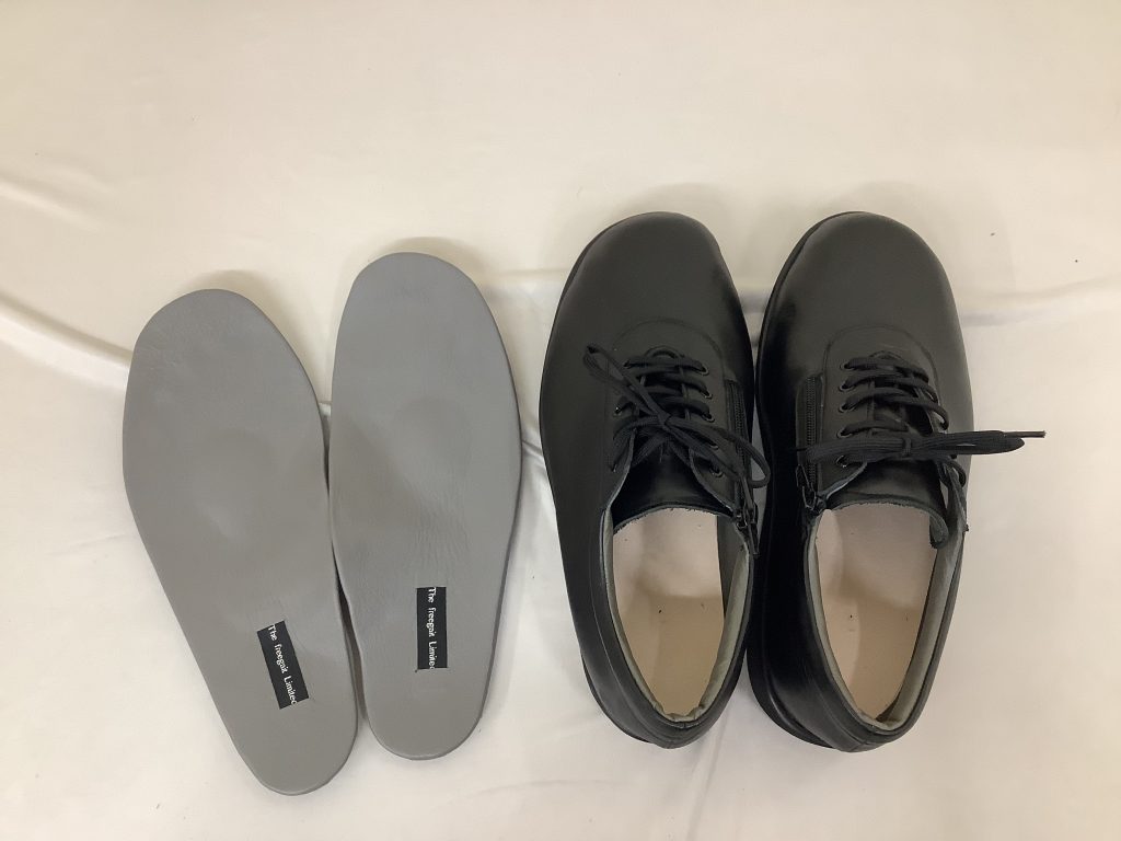 「指が痛い方」にお作りした靴、インソールの製作例です。
