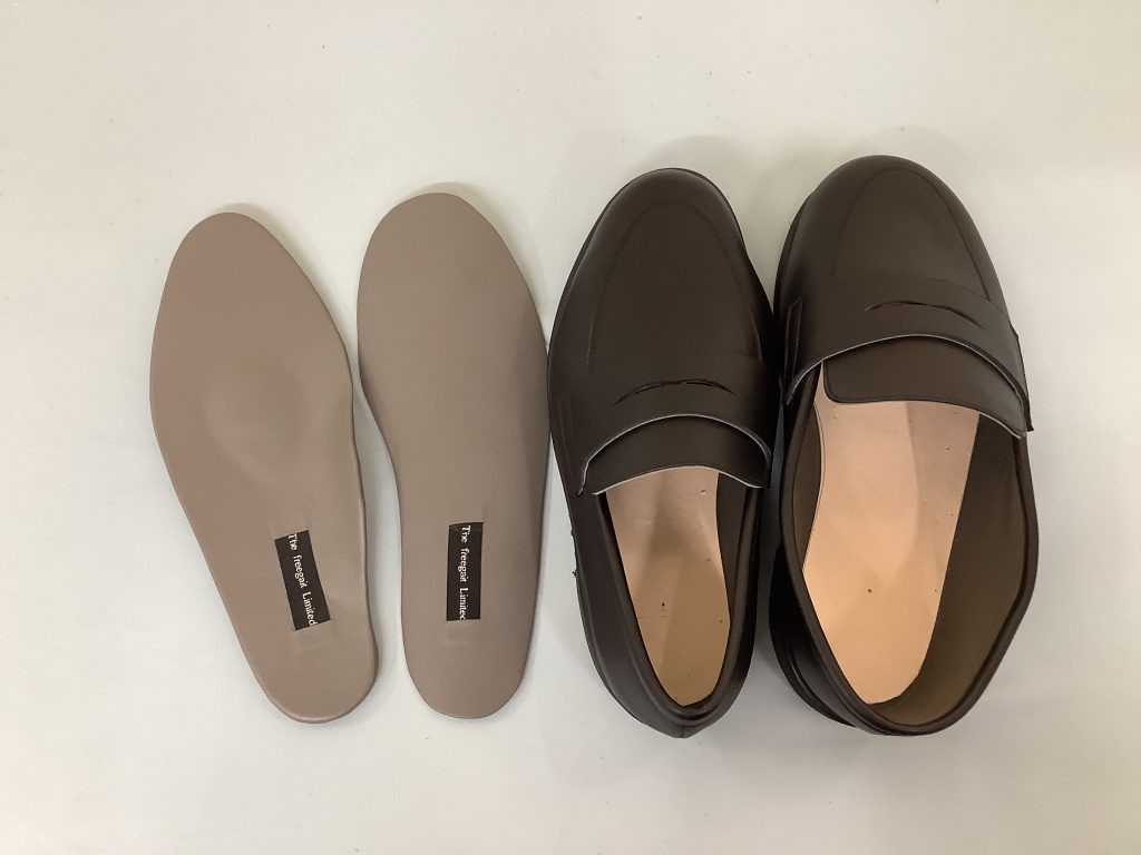 靴底(アウトソール)加工も弊社にて自作しています。よって仮合わせ時に細やかな調整が可能となるため、均等のとれた歩行の確保が得られます。