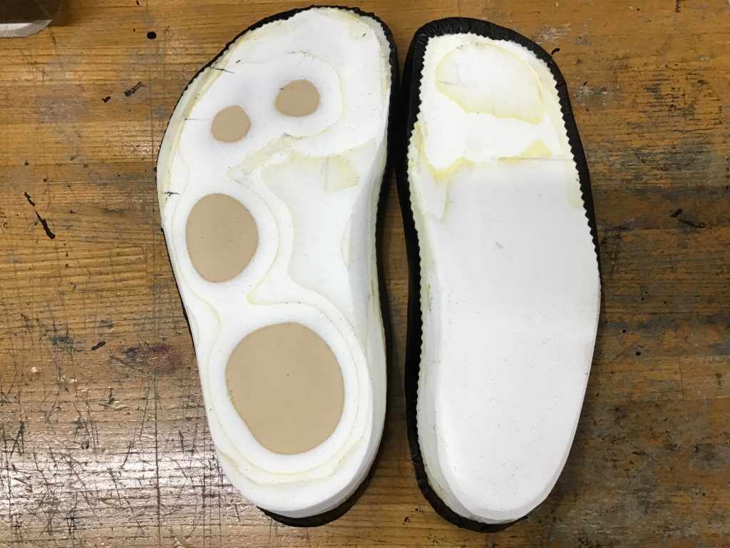 「指が痛い方」にお作りした靴、インソールの製作例です。